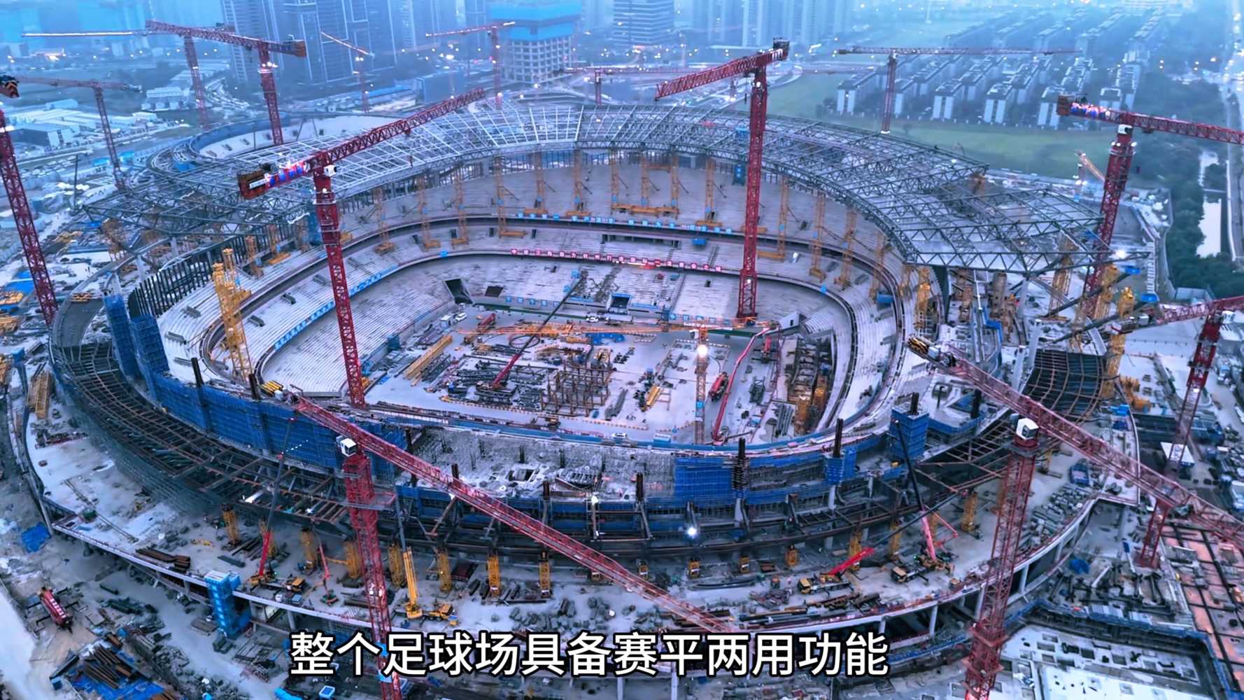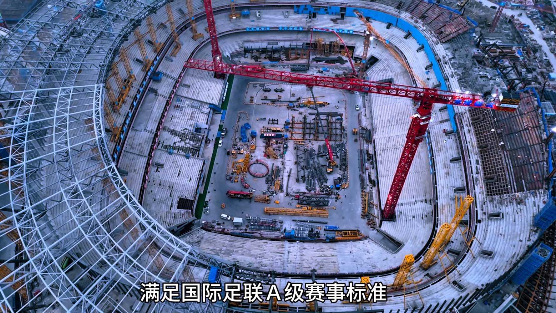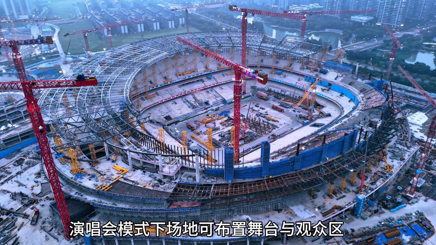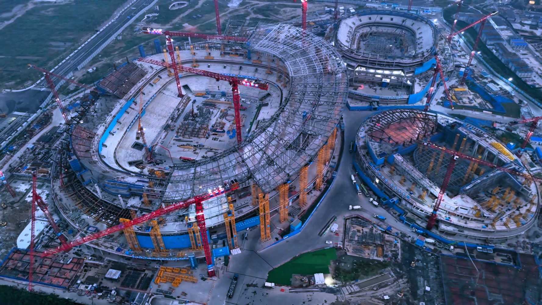Construction of the main stadium began in October 2023, with the China Construction Third Engineering Bureau as the main contractor, and the stadium is expected to cost 2.917 billion yuan. Construction of the entire complex began in full force in February 2024, when work on the sports hall and swimming pool also began. The cost of the entire project is 9.58 billion yuan, and it is expected to be completed in April 2027.