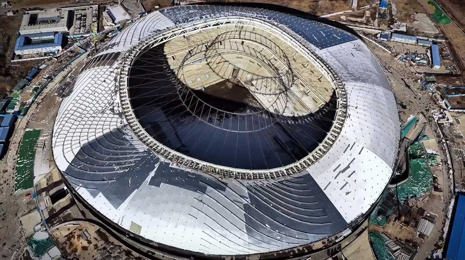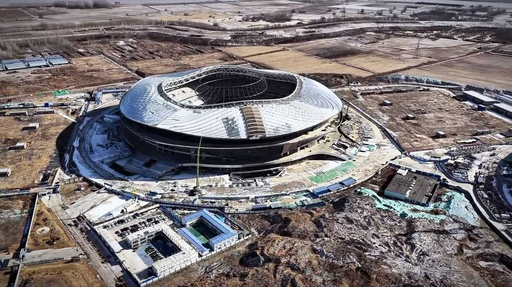 Implementation of the entire project is expected to cost 8.5 billion yuan. However, the stadium itself is to be built first, costing 1.965 billion yuan. The main contractor for the facility is the China Construction Eighth Engineering Bureau. Construction of the arena began in the second half of 2022, with the facility expected to be ready by the end of 2024 and opening in the early months of 2025.