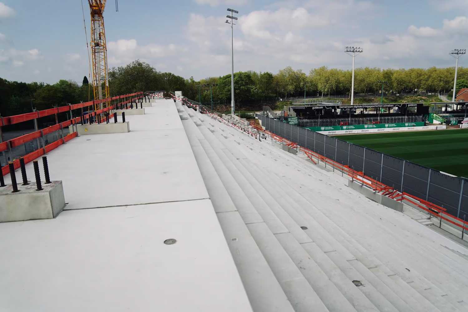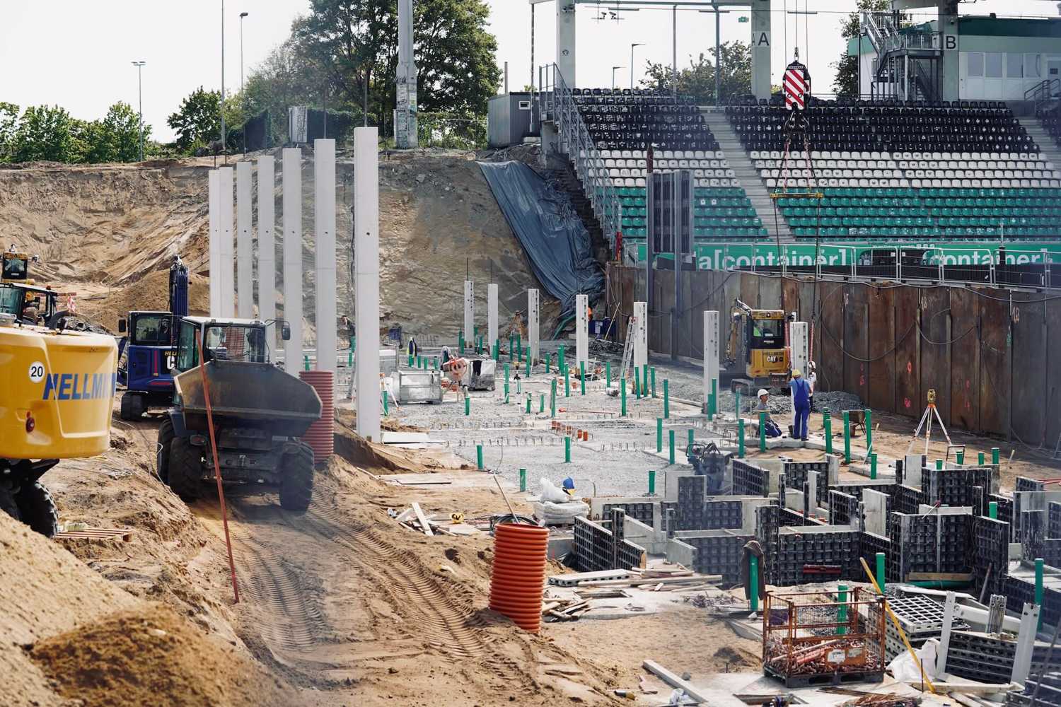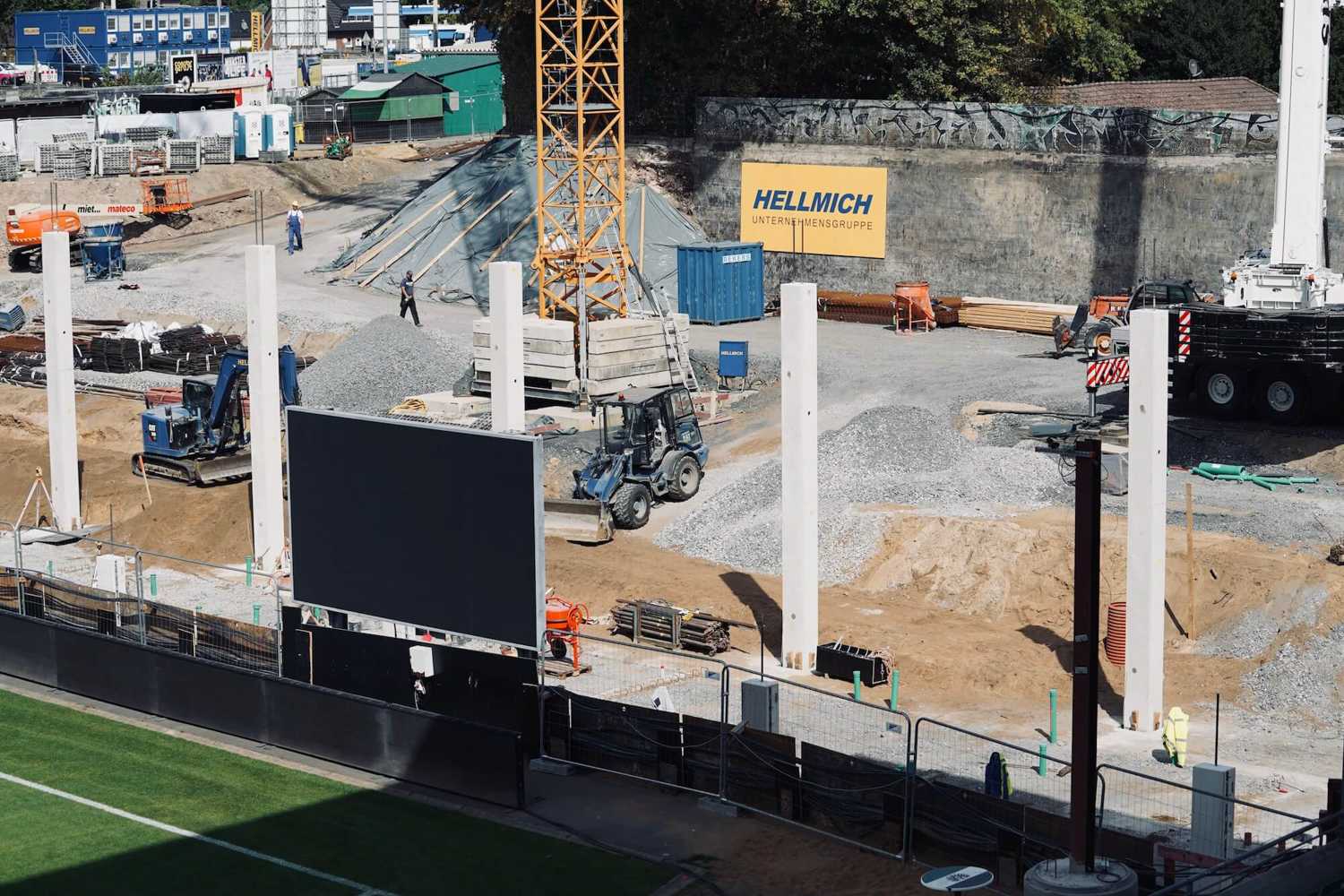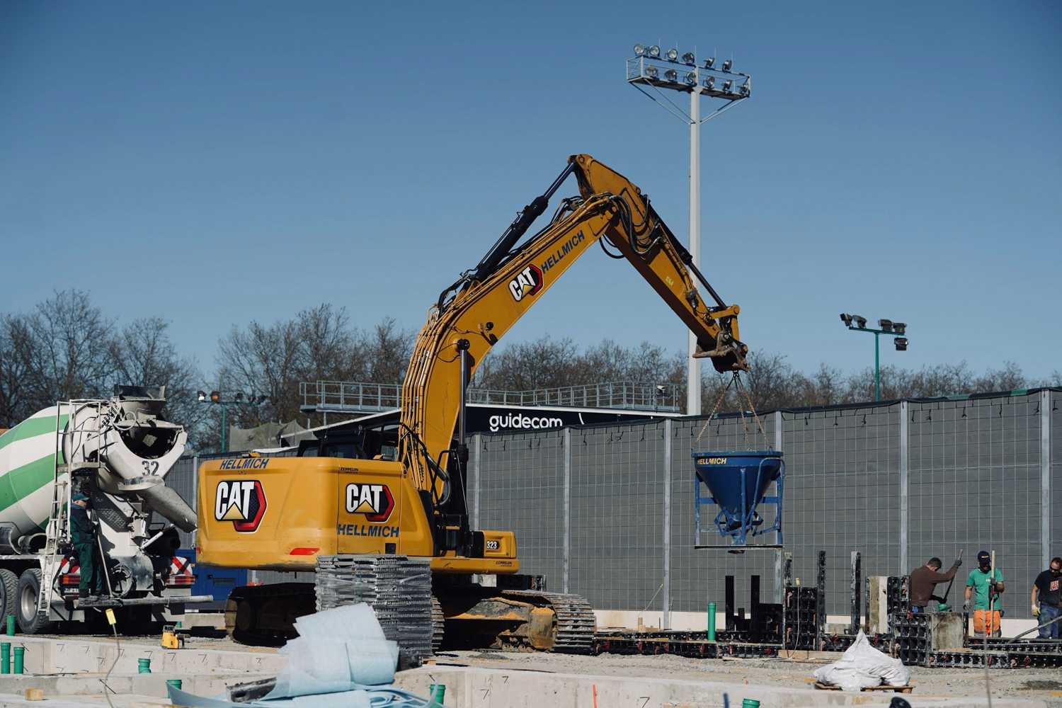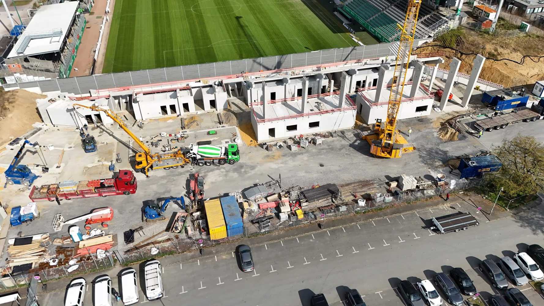 The redevelopment was symbolically inaugurated in June 2022, after which the western stand was dismantled over the following months. The main contractor, however, was only selected in 2024, and the main construction phase began in early 2025.