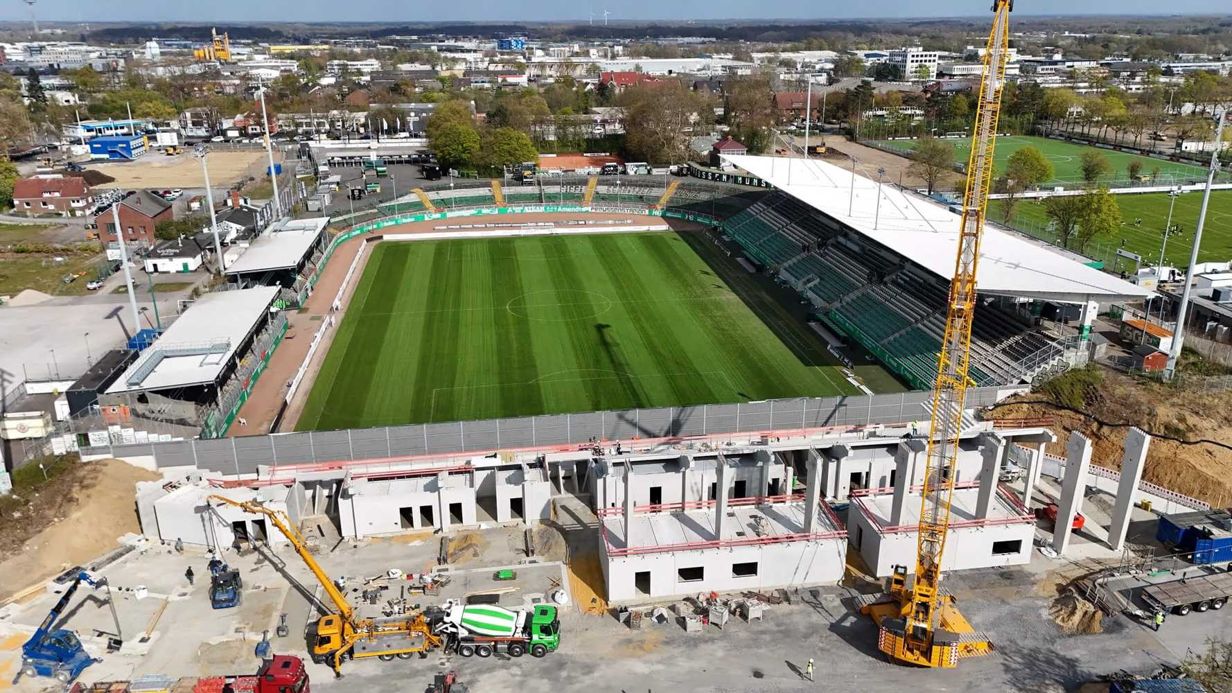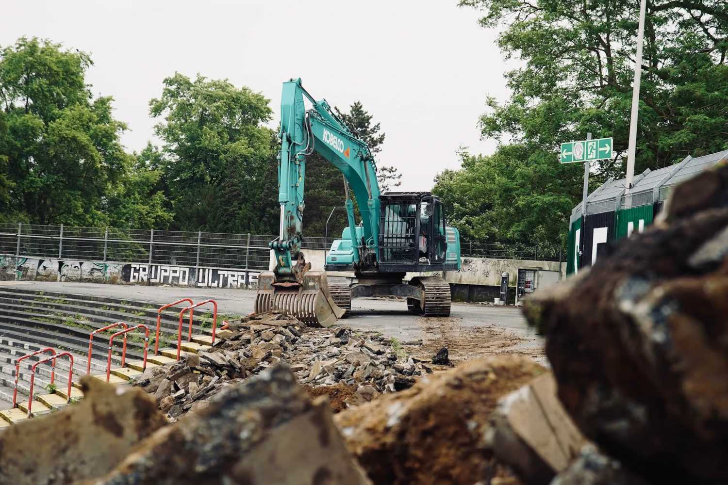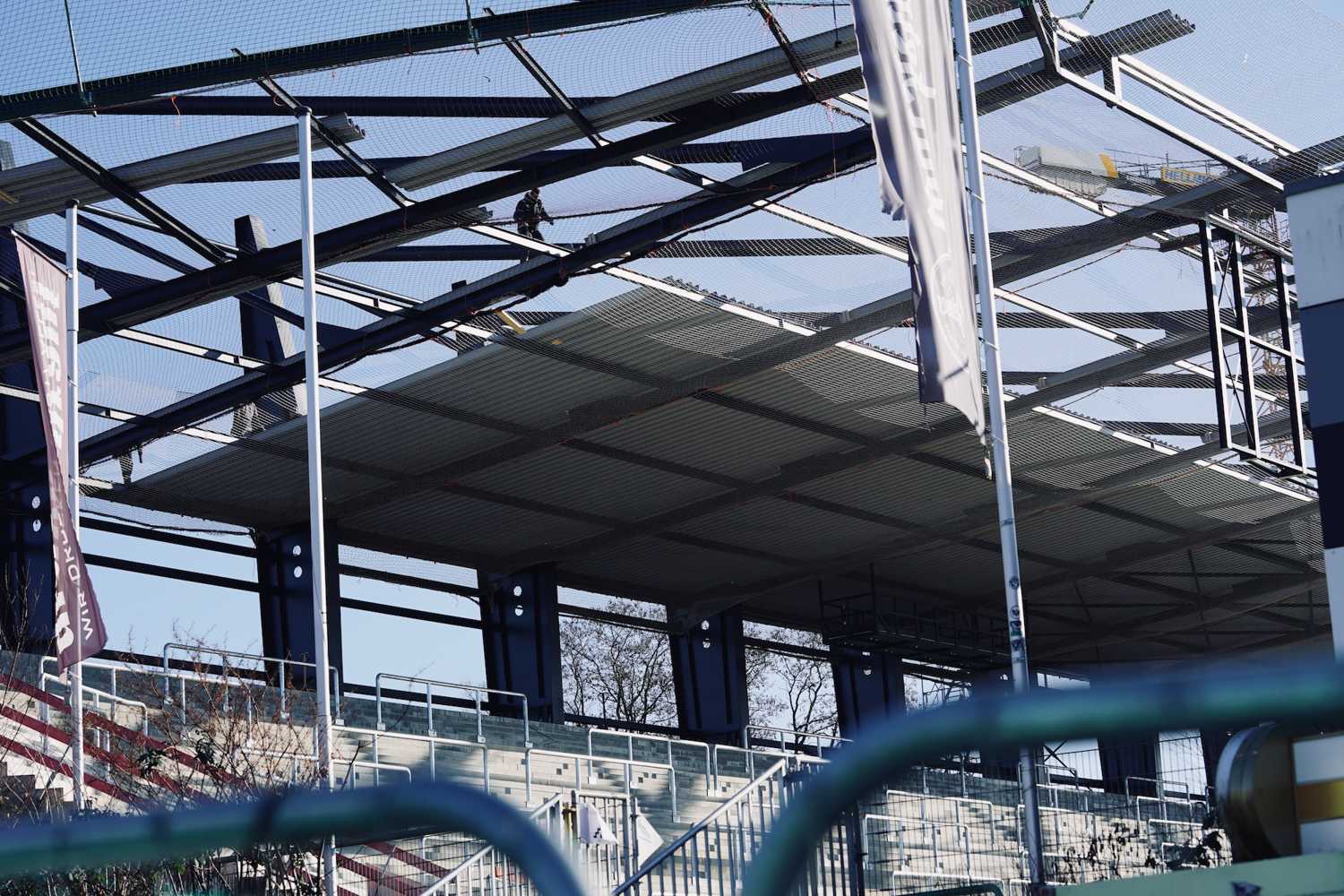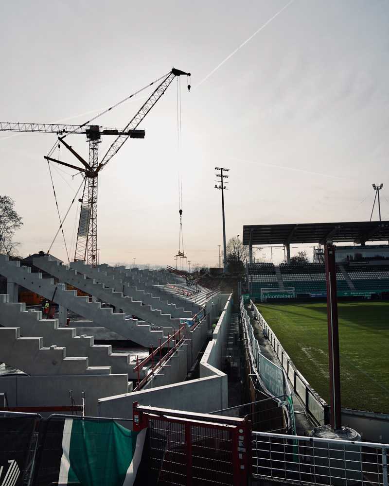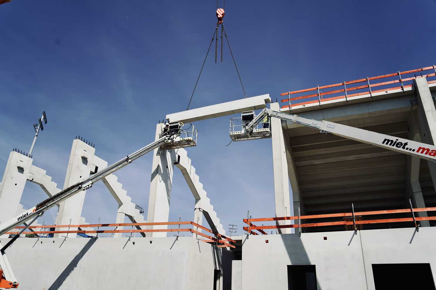 The redevelopment was symbolically inaugurated in June 2022, after which the western stand was dismantled over the following months. The main contractor, however, was only selected in 2024, and the main construction phase began in early 2025.