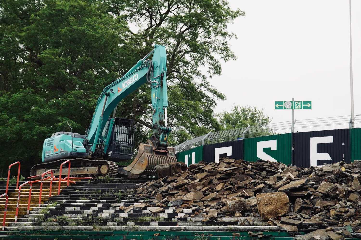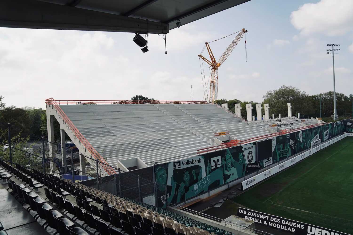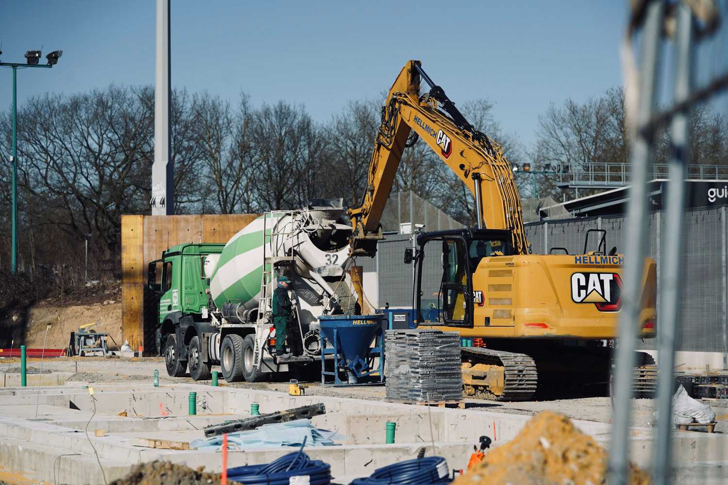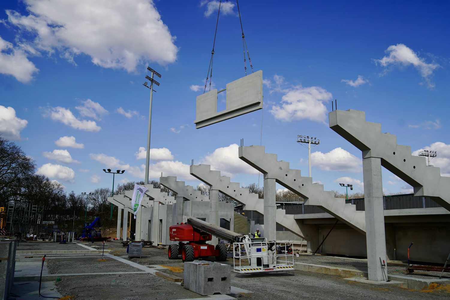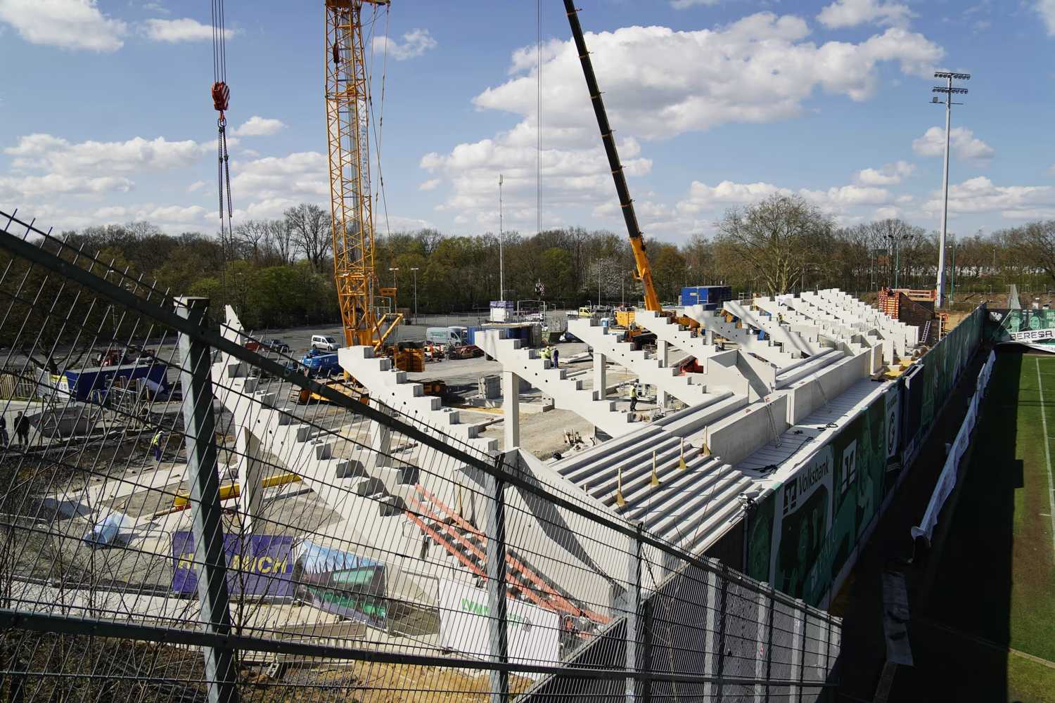 The redevelopment was symbolically inaugurated in June 2022, after which the western stand was dismantled over the following months. The main contractor, however, was only selected in 2024, and the main construction phase began in early 2025.