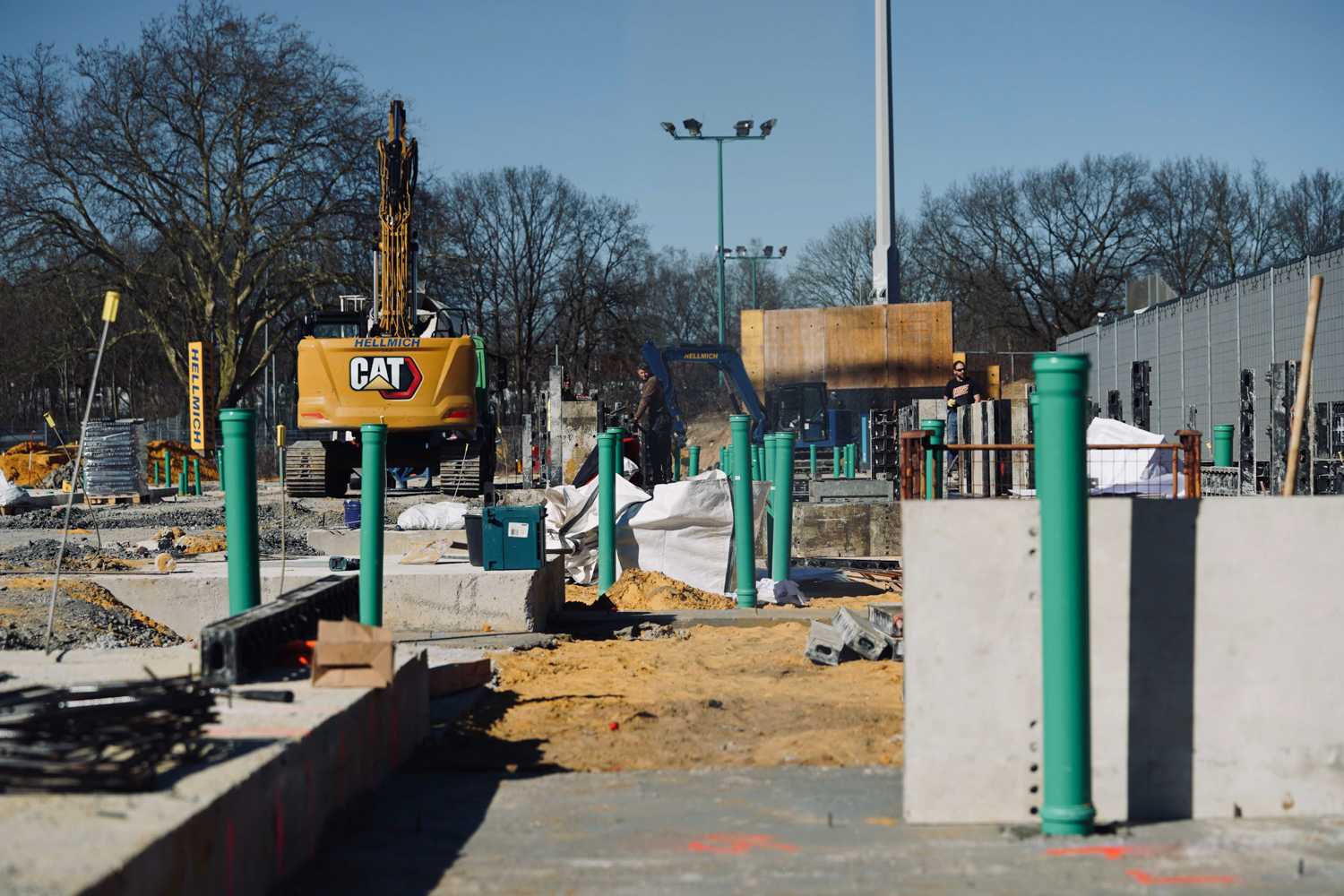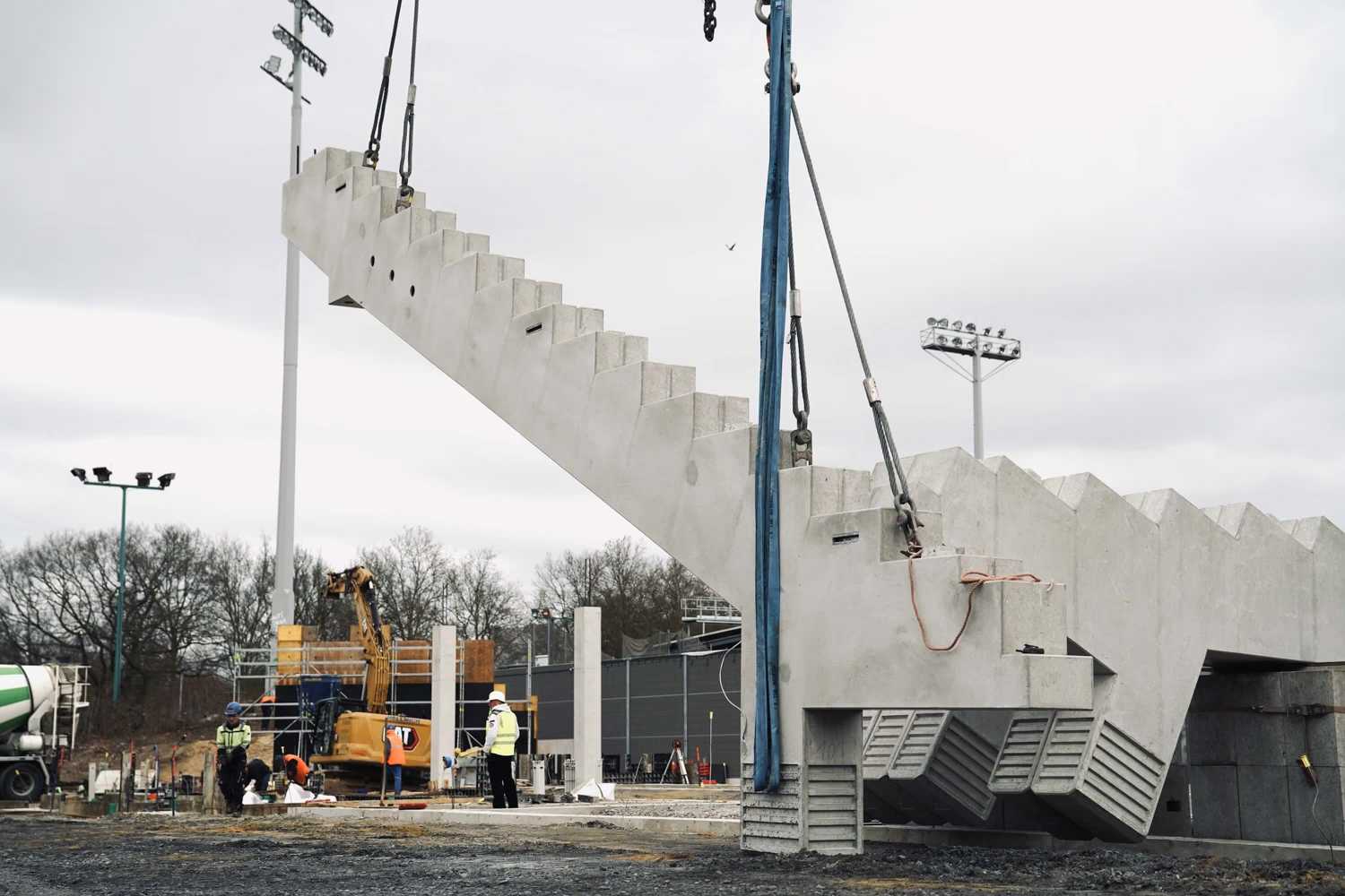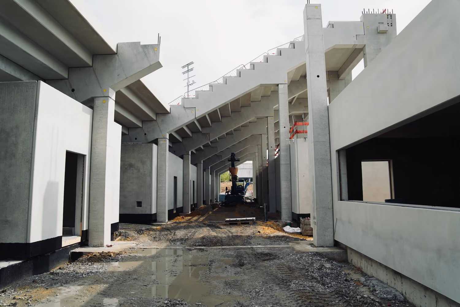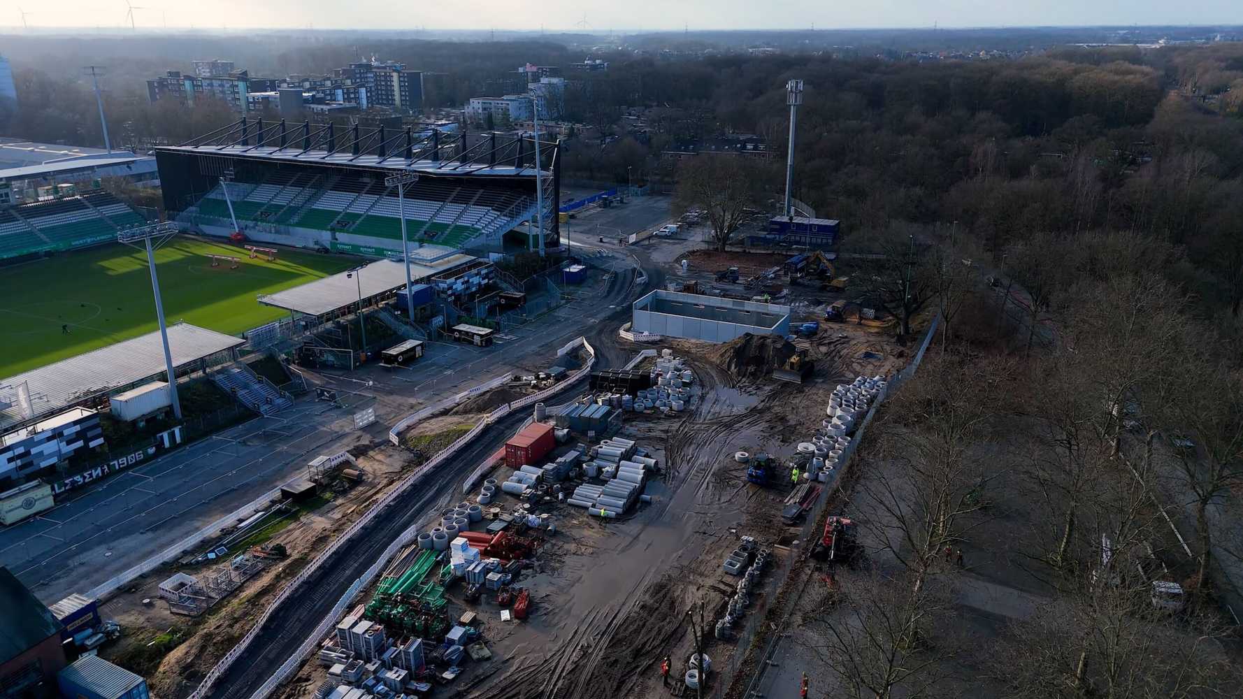 The redevelopment was symbolically inaugurated in June 2022, after which the western stand was dismantled over the following months. The main contractor, however, was only selected in 2024, and the main construction phase began in early 2025.