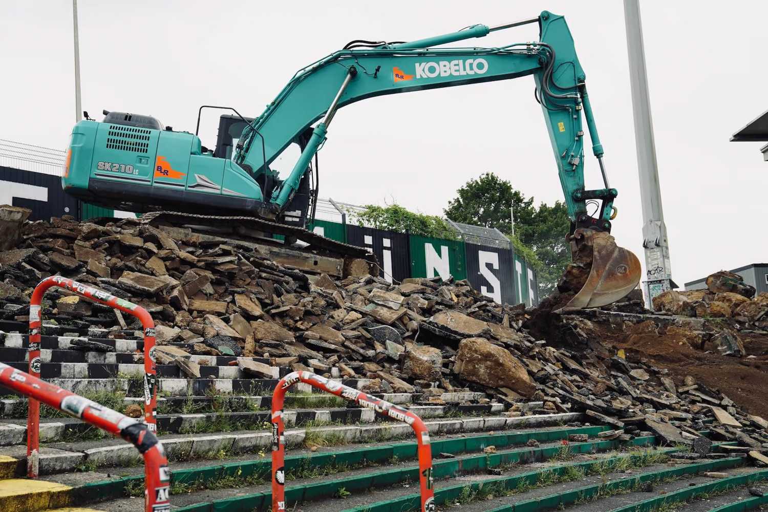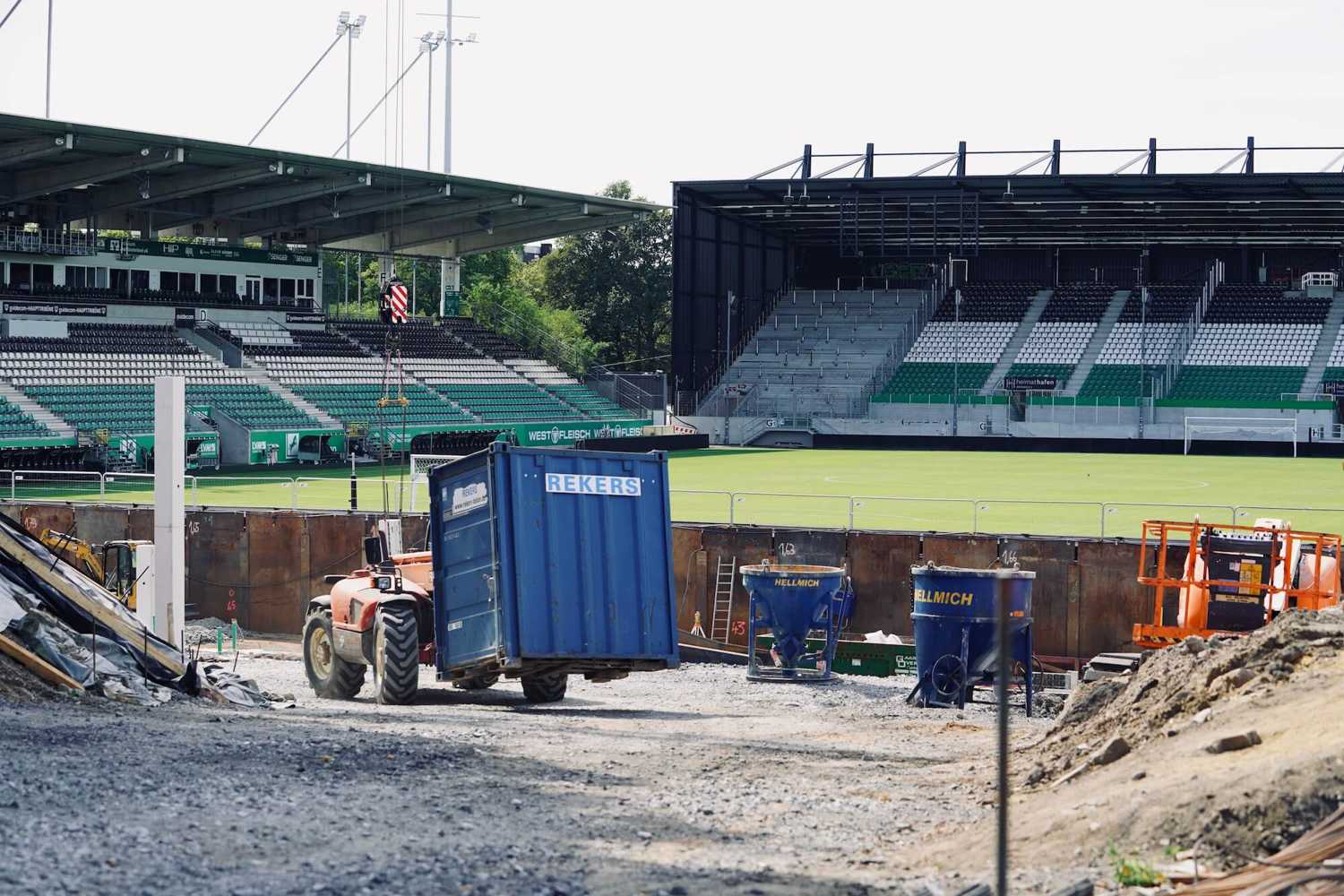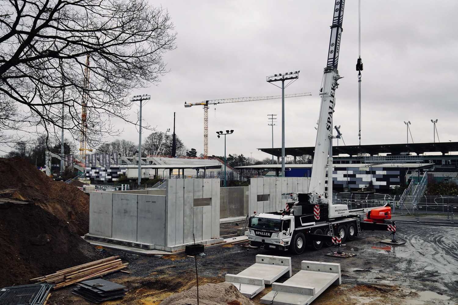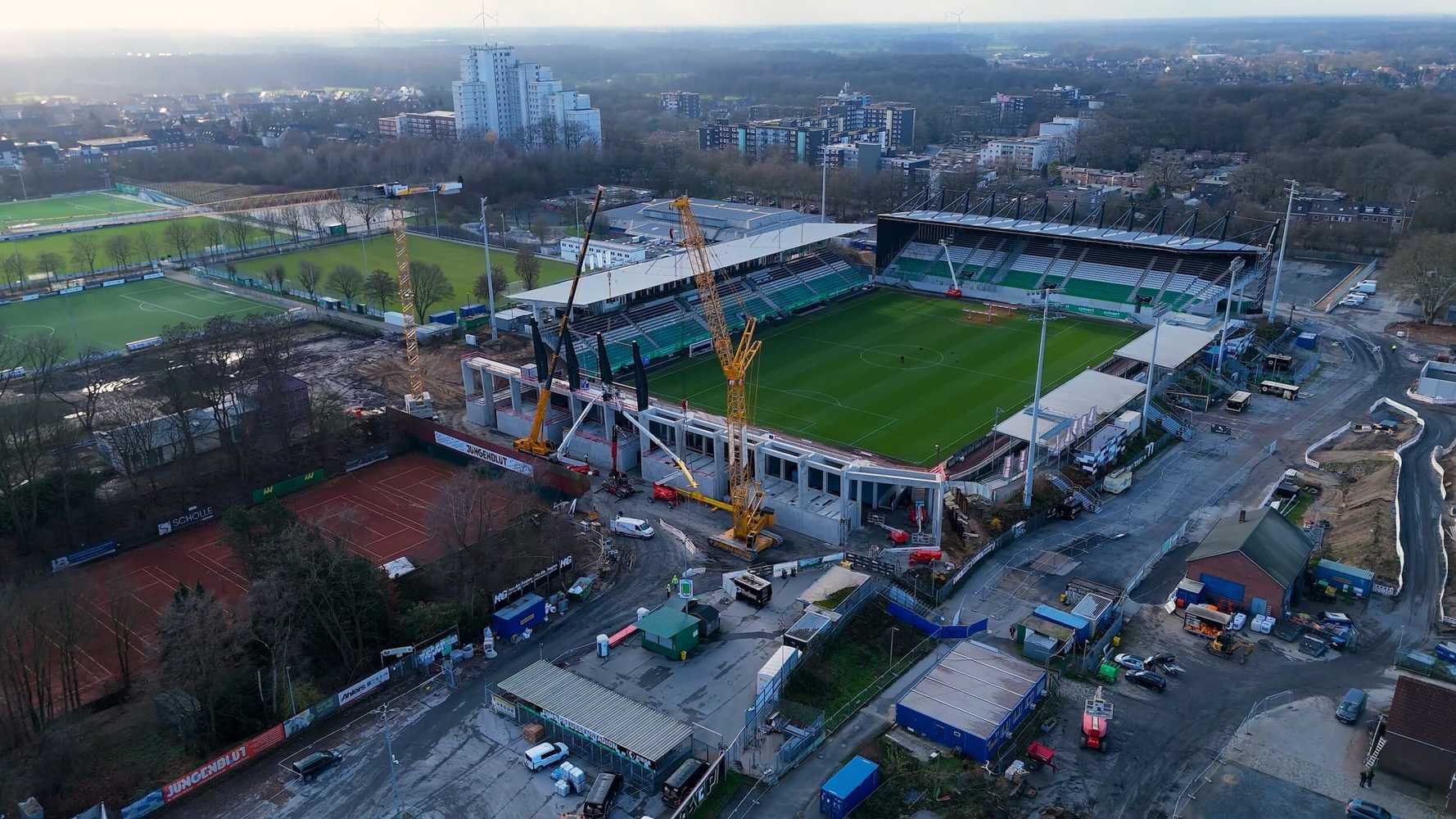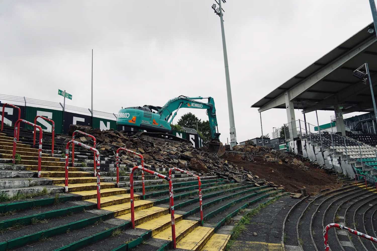 The redevelopment was symbolically inaugurated in June 2022, after which the western stand was dismantled over the following months. The main contractor, however, was only selected in 2024, and the main construction phase began in early 2025.
