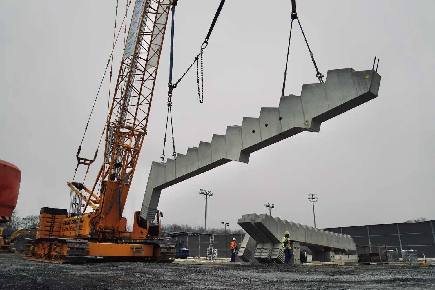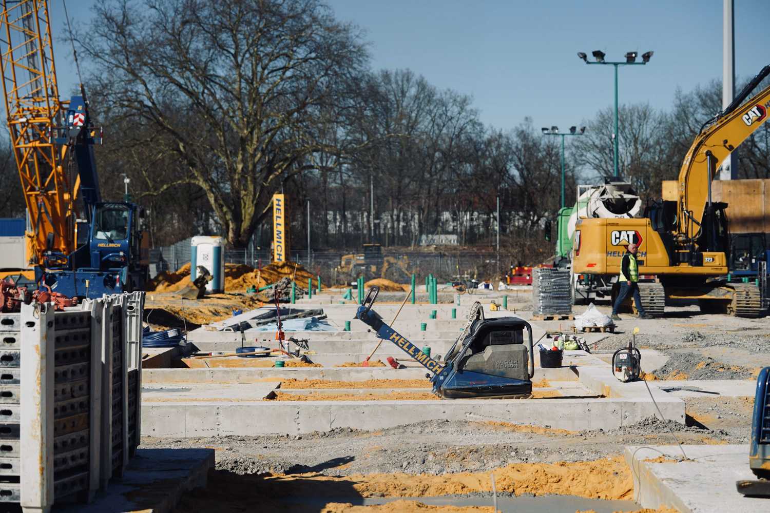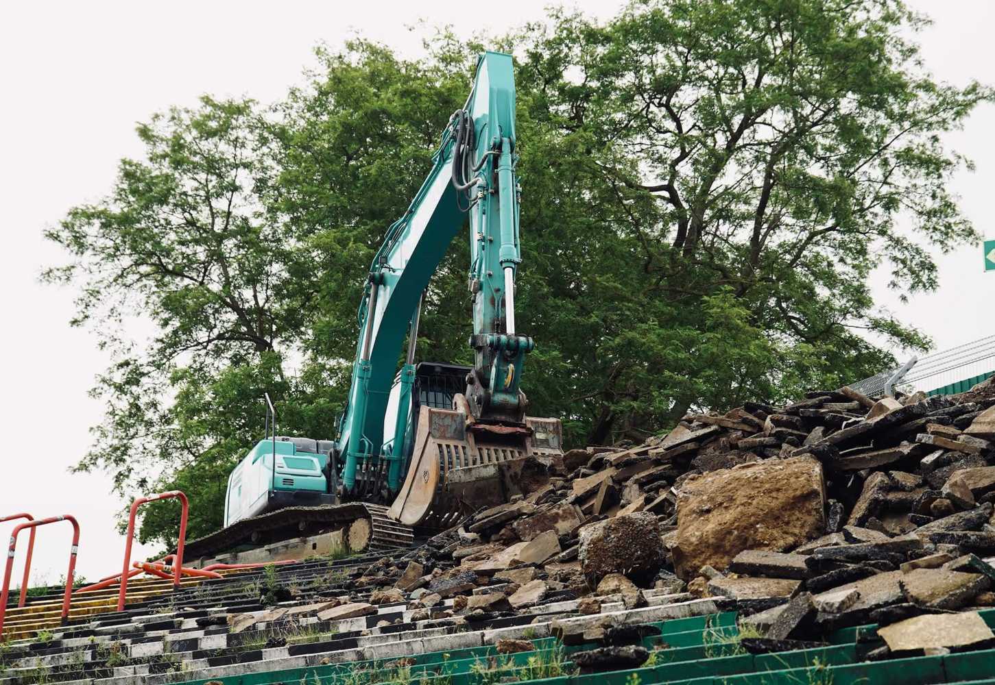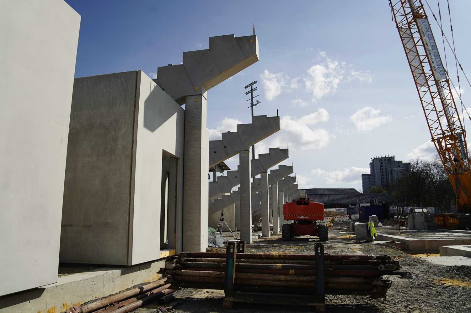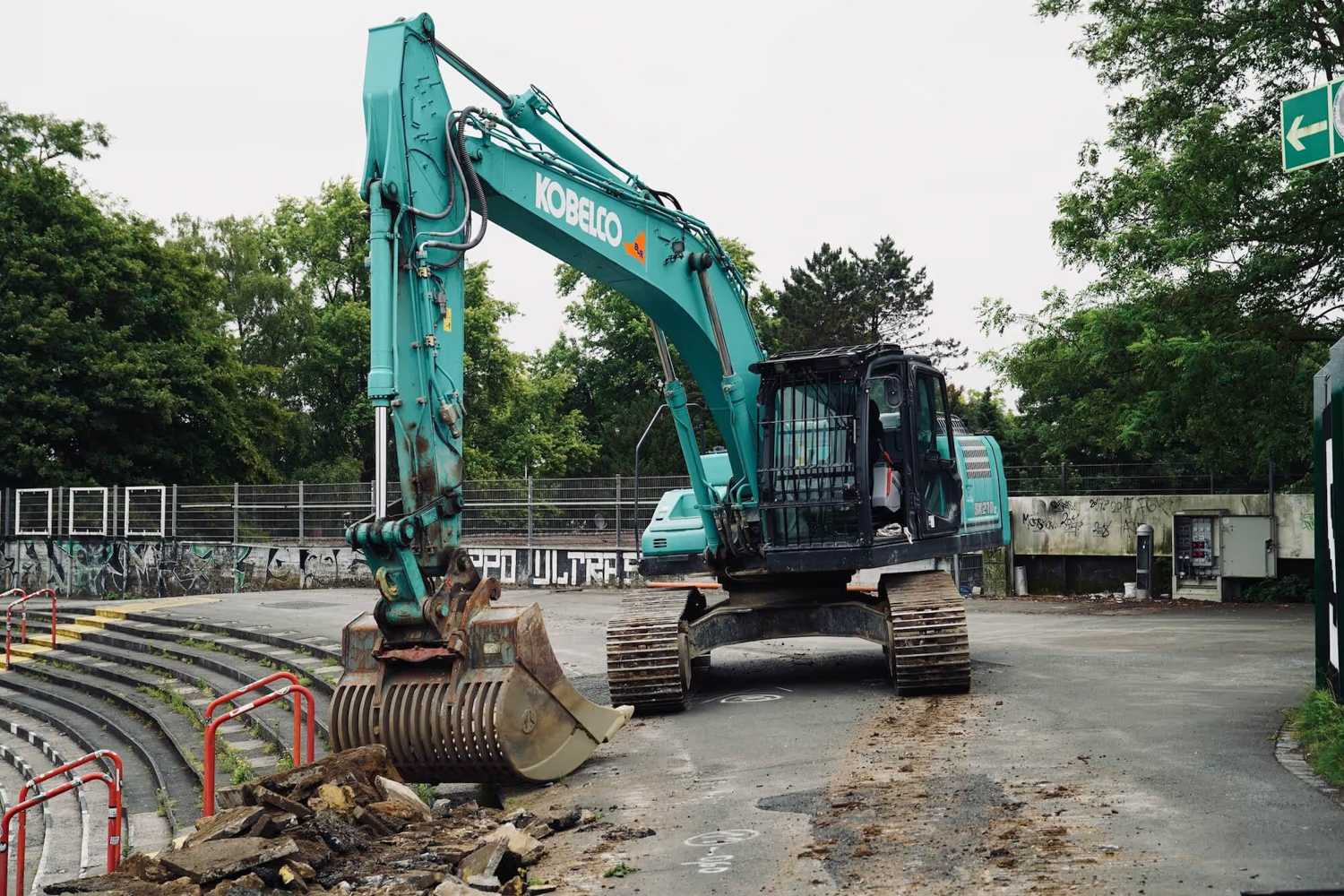The redevelopment was symbolically inaugurated in June 2022, after which the western stand was dismantled over the following months. The main contractor, however, was only selected in 2024, and the main construction phase began in early 2025.