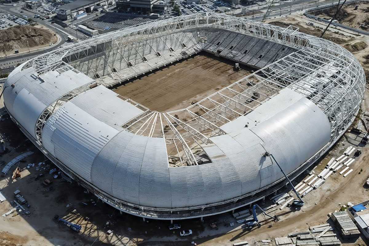 Construction work started at the beginning of 2023. After Hamas’s attack on Israel on October 7, 2023, a full-scale conflict broke out in the Gaza Strip, whose northern border lies only about 30 km from Ashdod; however, the construction of the stadium continued and progressed at a rapid pace.