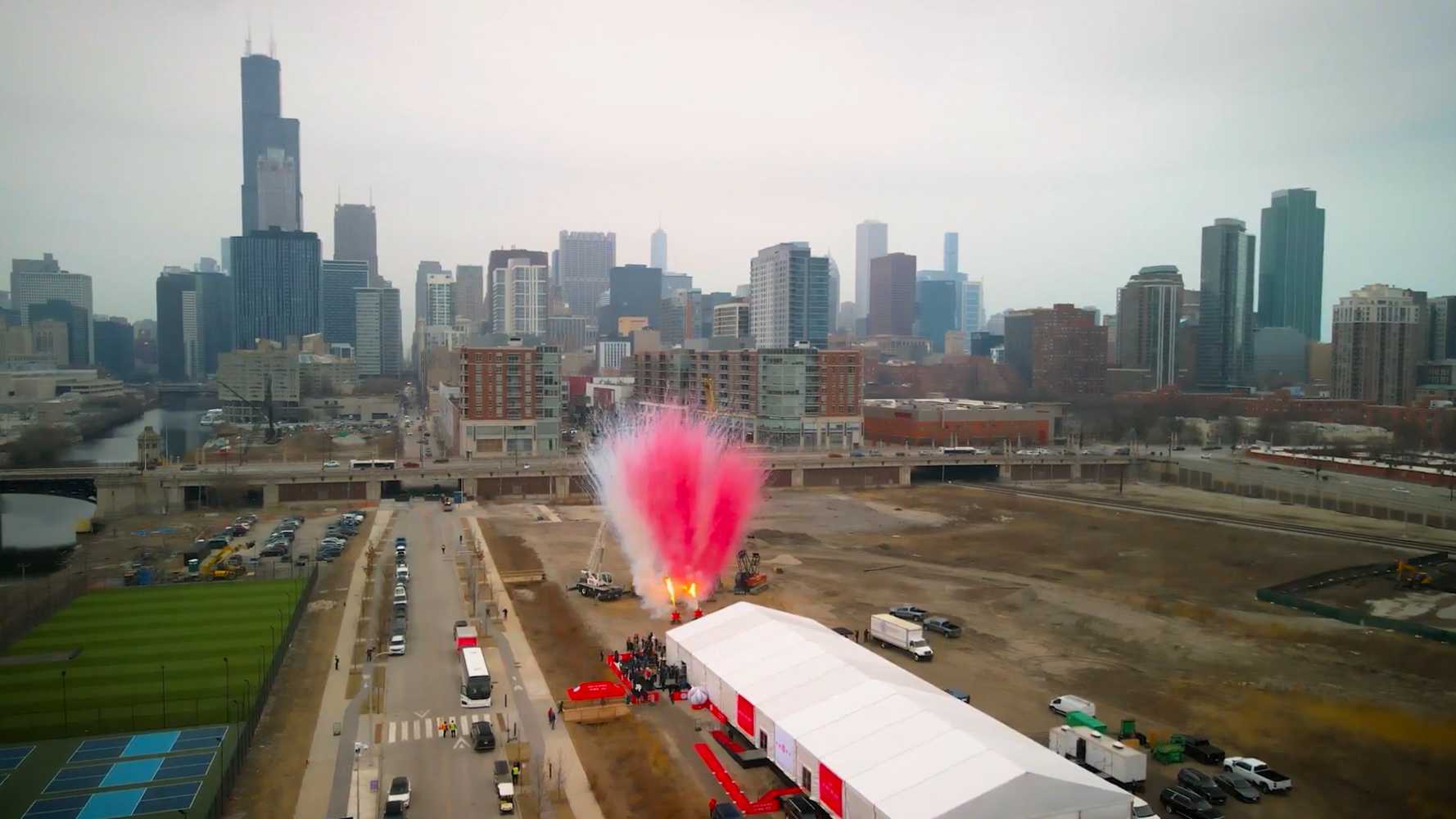 A new stadium for Chicago Fire FC is under construction near downtown, on an undeveloped site of a former railway yard – less than a mile west of Soldier Field, where the team currently plays its home matches.