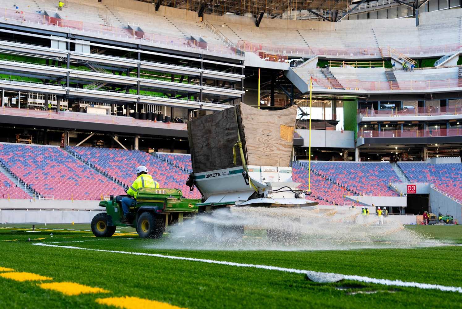The Buffalo Bills celebrated a major milestone in the construction of their new stadium on Friday, April 4, by placing the final structural steel beam. Now, a new challenge begins: the turf.