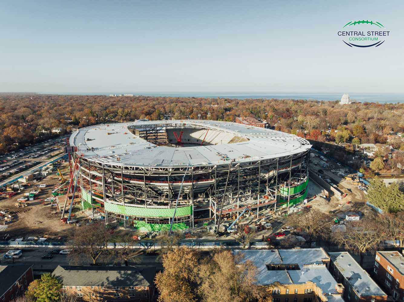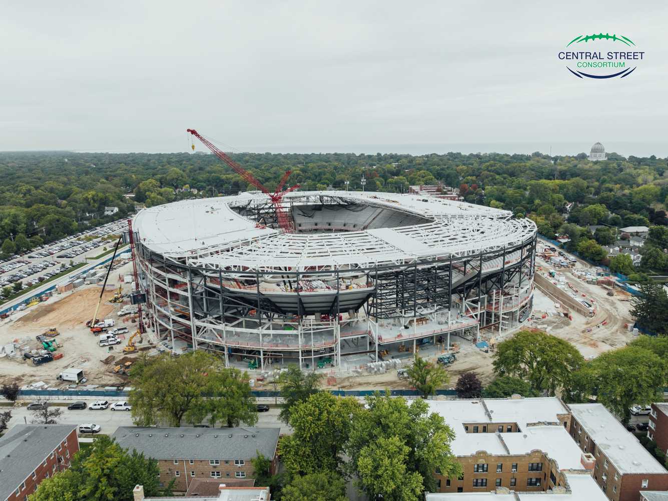 In March 2023, it was announced that the stadium would be built by Turner Chicago and Walsh Construction, which had formed the Central Street Consortium. In November 2023, the Evanston City Council approved the construction plans. The project is expected to cost $800 million and will be funded by the university's budget and donations.