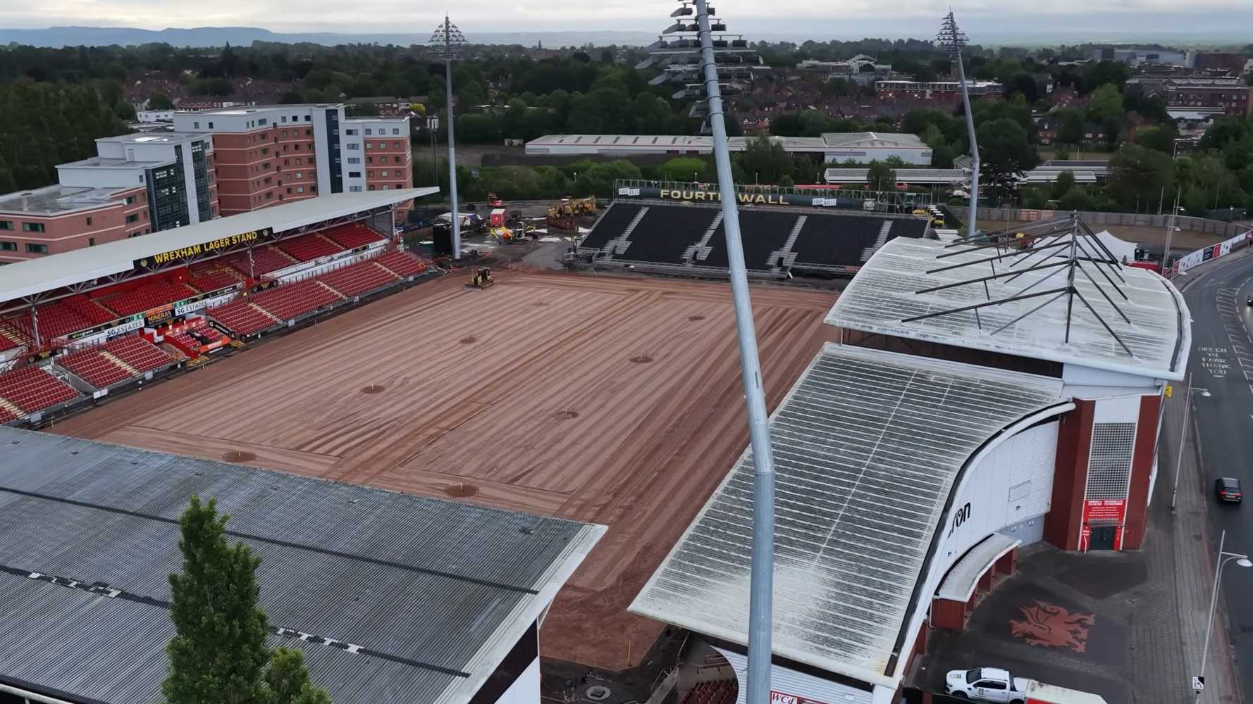 How did the implementation of the new stand at the Wrexham stadium begin?
