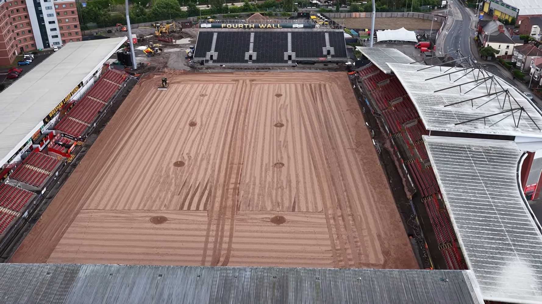 Already in the summer of 2021, the first step was taken, removing the metal railings from the old stand. In June 2022, the club became the owner of the stadium again, plans and renderings of the new stand were made public (the design was prepared by AFL Architects), and the local authorities authorized the demolition.