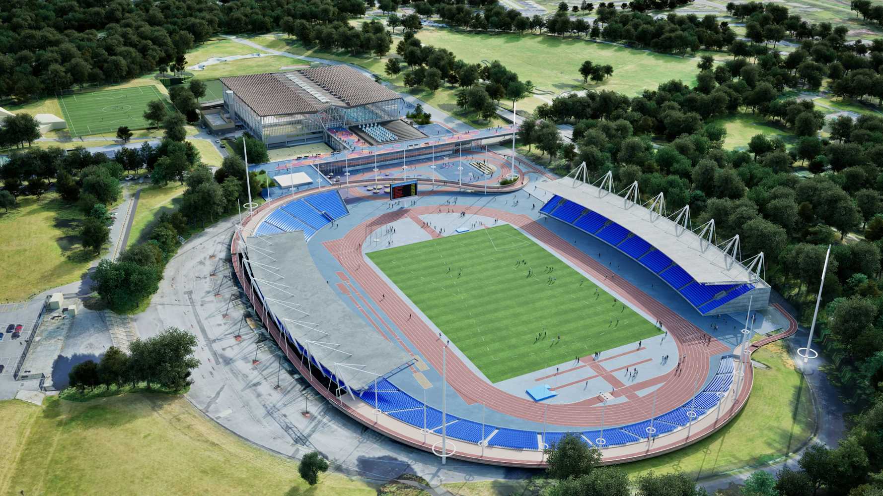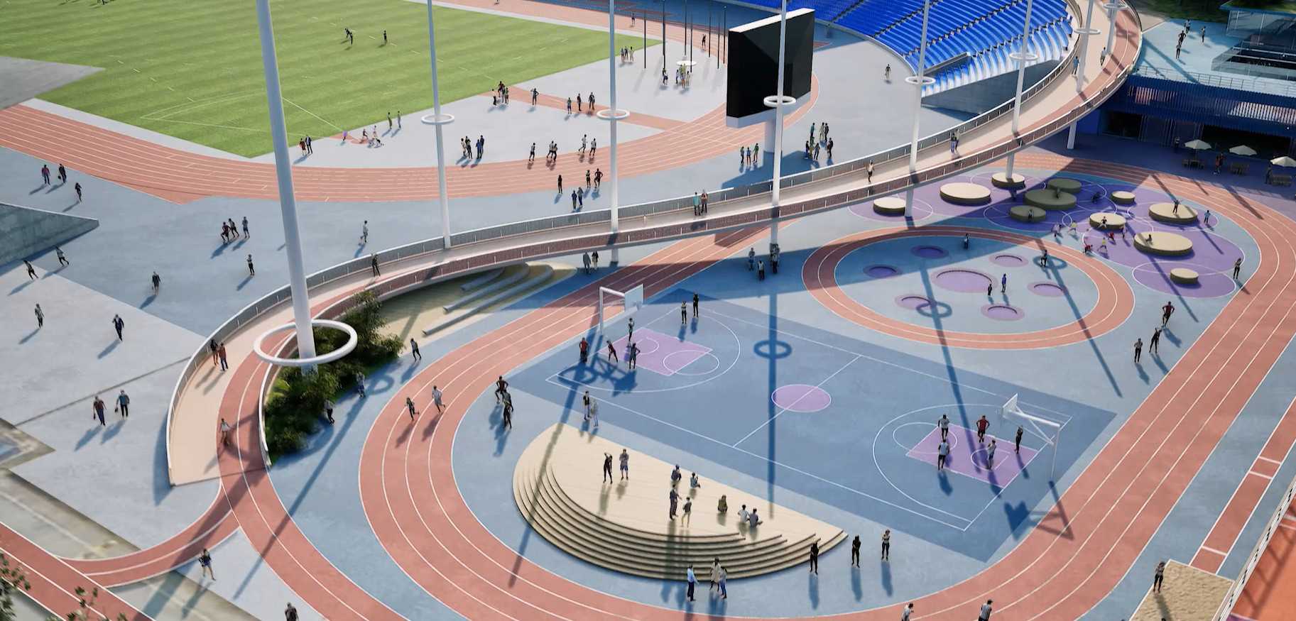The expansion of the northern curve will result in the removal of the existing training pitch, which will be replaced by a Sports Plaza featuring a 200-metre training track, a 3×3 basketball court, and an outdoor gym.