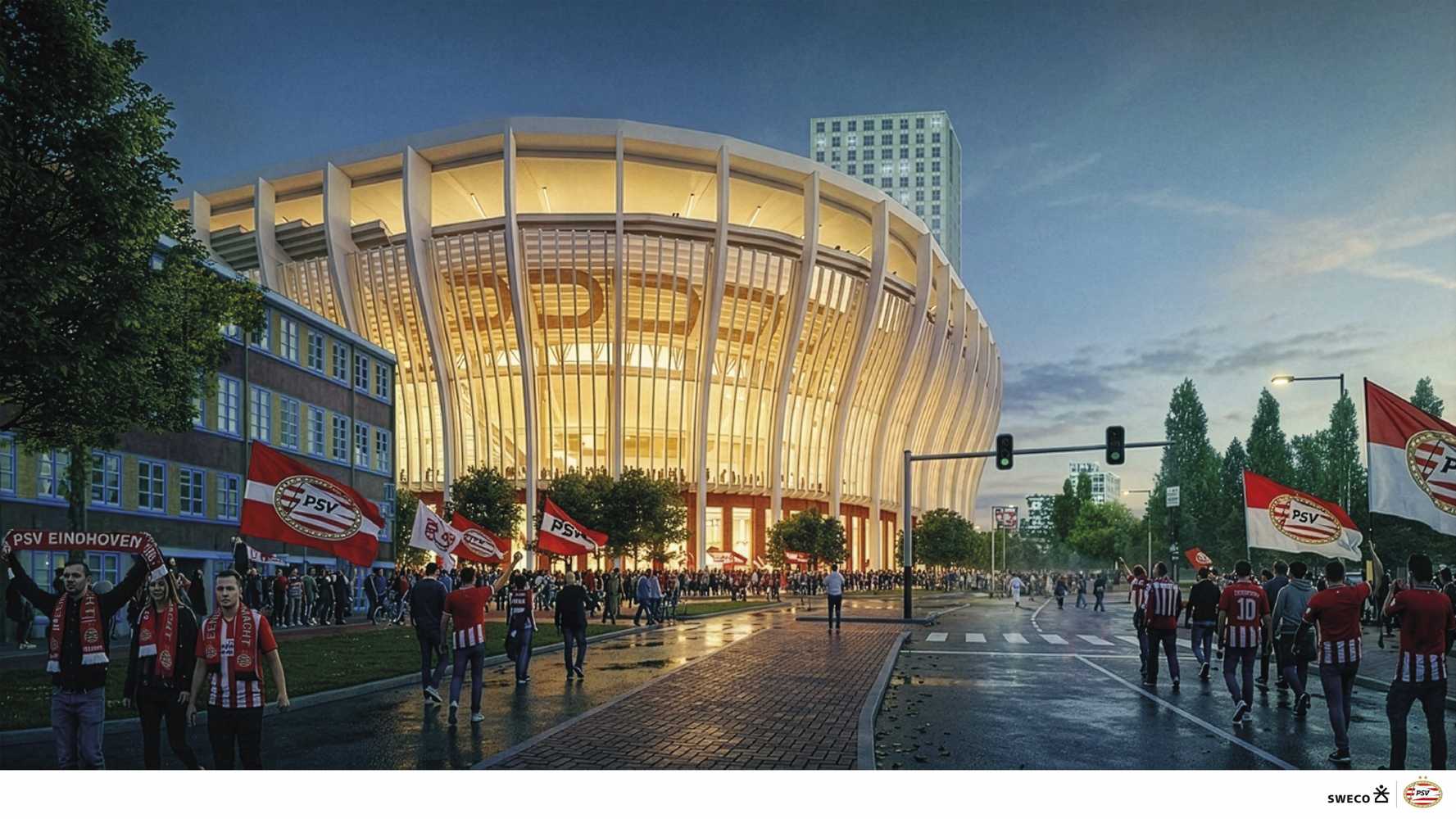 The new Philips Stadion expansion project was officially announced by PSV on 19 March 2026. The preliminary concept was developed in collaboration with Sweco.