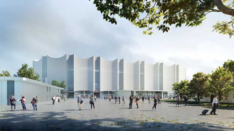 The venue will have a capacity of 25,000 and will be equipped with modern technologies. The stands will be fully covered, and the exterior will be protected by a white, translucent facade, harmonizing with the roof design.
