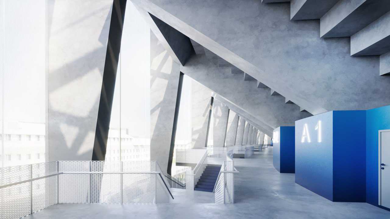 The modern, football-specific arena, with a capacity of 25,000 spectators, will be built on the site of the Tsentralnyi Stadion Profsoyuzov. The building will form a compact, rectangular volume, covered by a white roof and a semi-transparent facade.