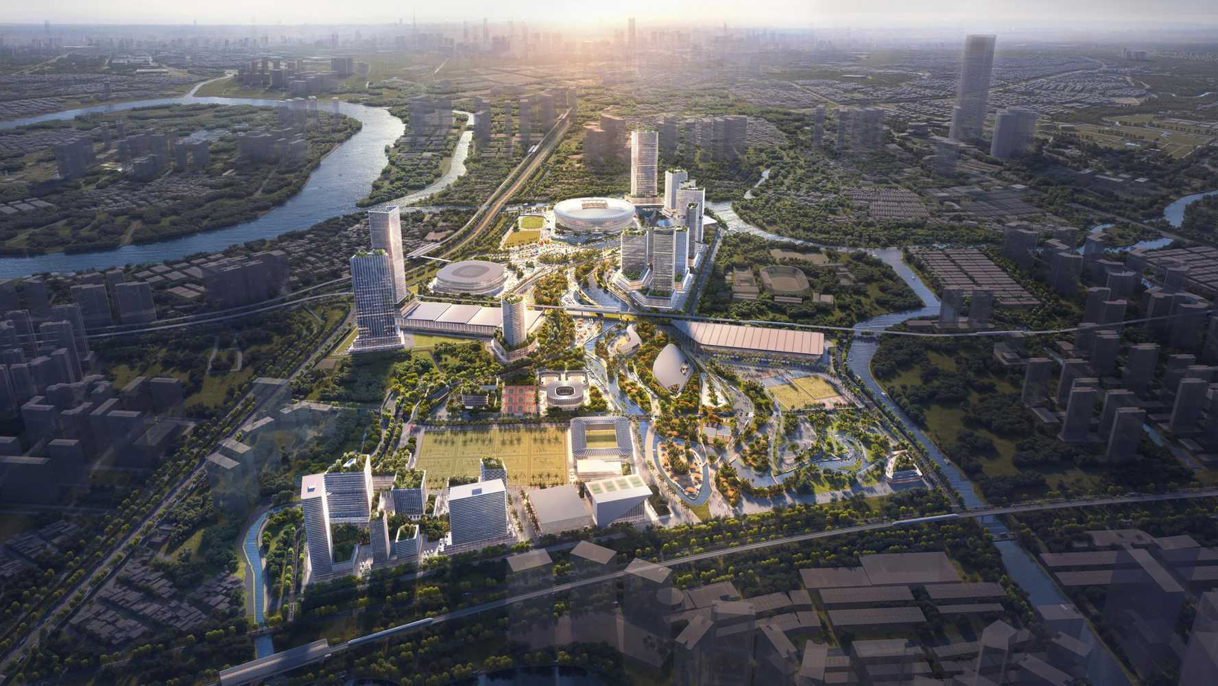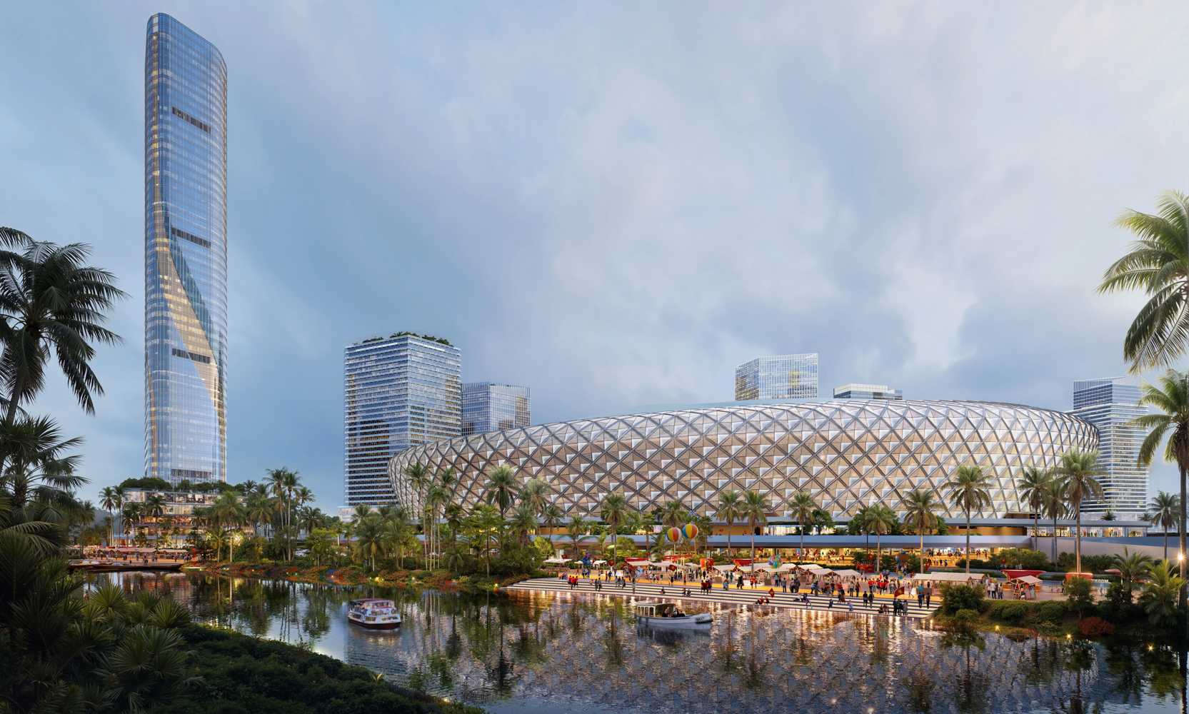 The complex will also feature a conference center with a capacity of 10,000 people. The entire site will be enhanced with numerous walking paths, squares, green spaces, and riverside promenades.