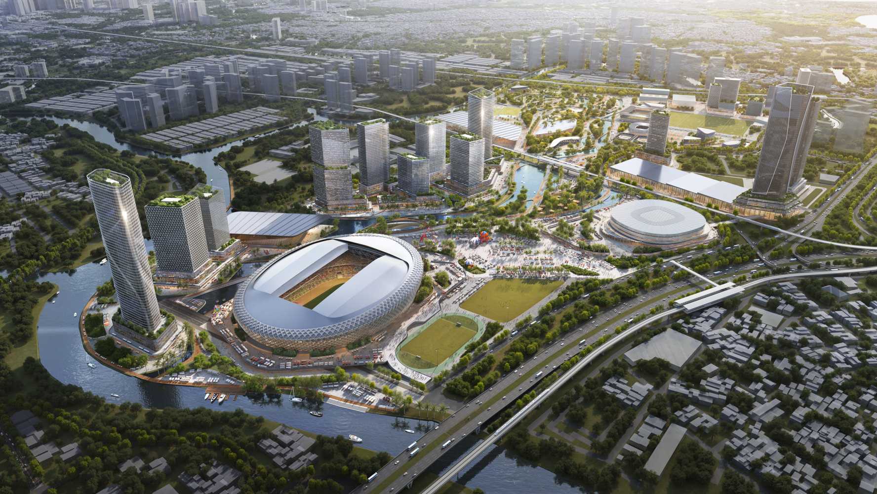 The centerpiece of the new sports complex will be a multifunctional stadium with a capacity of 70,000 spectators. The arena’s design draws inspiration from the palm trees growing along the banks of the surrounding rivers.