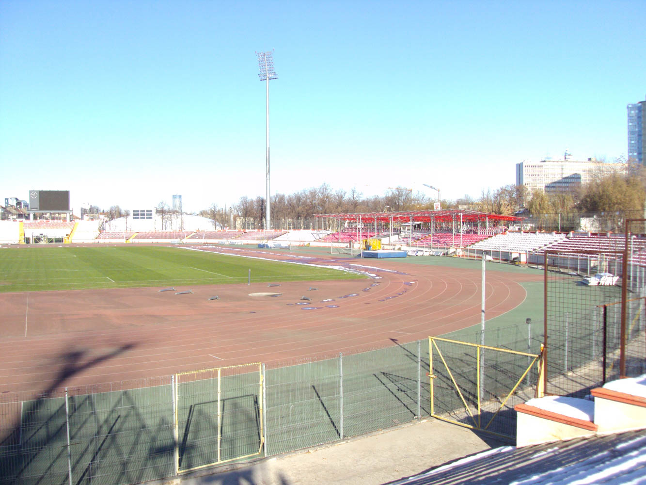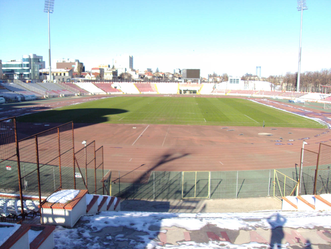 Construction of Dinamo Bucharest’s stadium began shortly after the club was founded, with the venue officially opening in 1951. The stadium featured an athletics track and oval-shaped stands, which were higher on the western side. After the installation of seating, the stadium had a capacity of approximately 15,000 spectators.