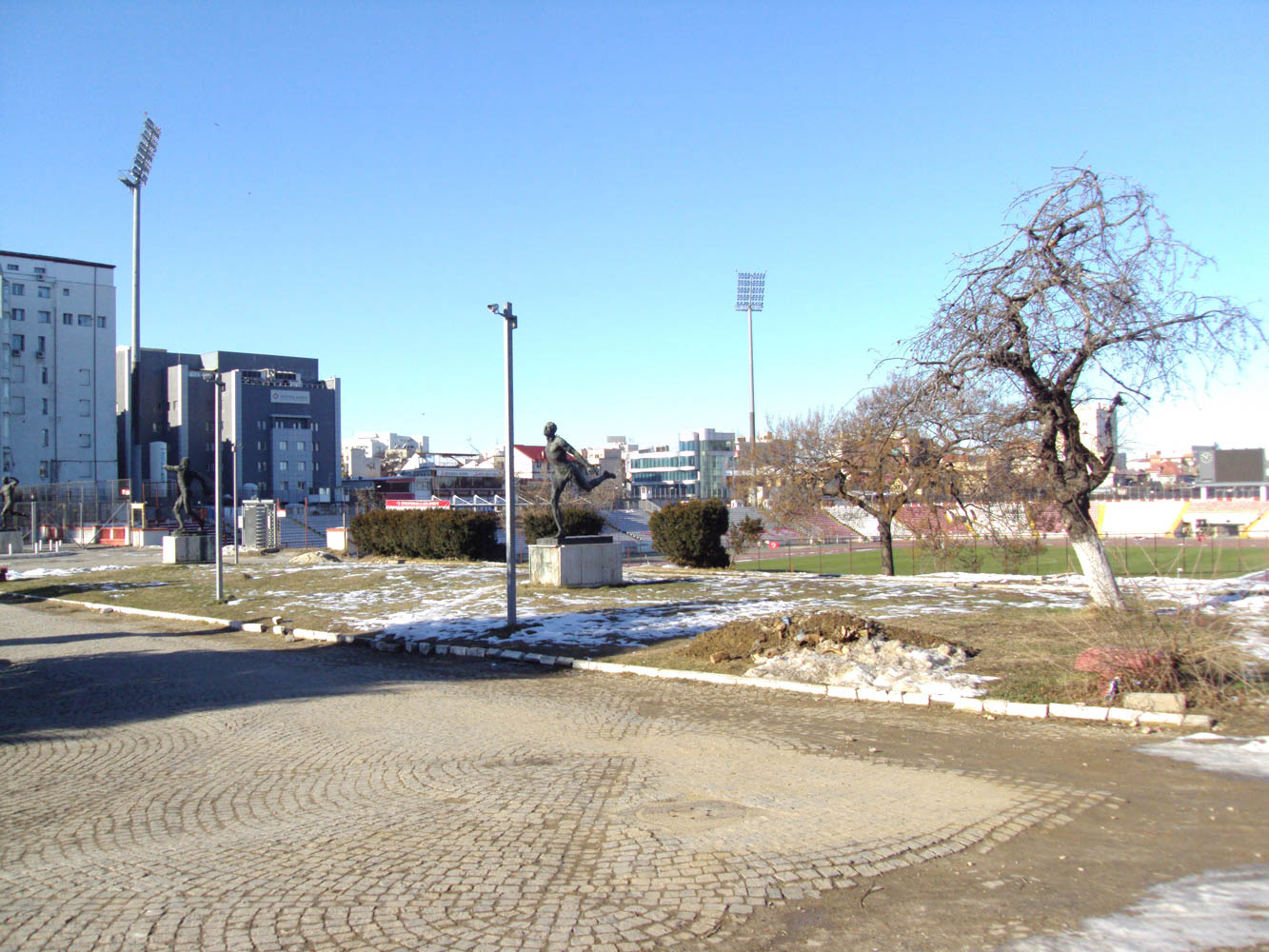 At the entrance to the complex, visitors were welcomed by a small square featuring a statue of Ivan Patzaichin, a multiple Olympic medalist in canoeing, as well as a distinctive arched gate building. After passing through the gate, supporters walked past fountains and further sculptures of athletes on their way to the stadium.