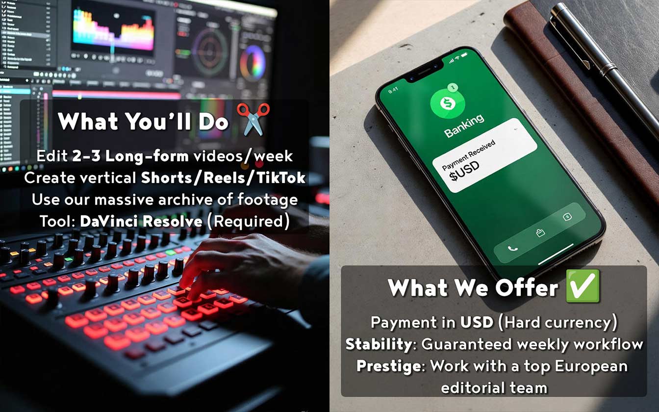 This isn't a dead-end gig. If you prove your skills and dedication, you won't just be an editor—you will have the opportunity to become the Head of our Spanish-speaking channels (YouTube, TikTok, IG, X, FB). We want someone who takes pride in building something big from the ground up.