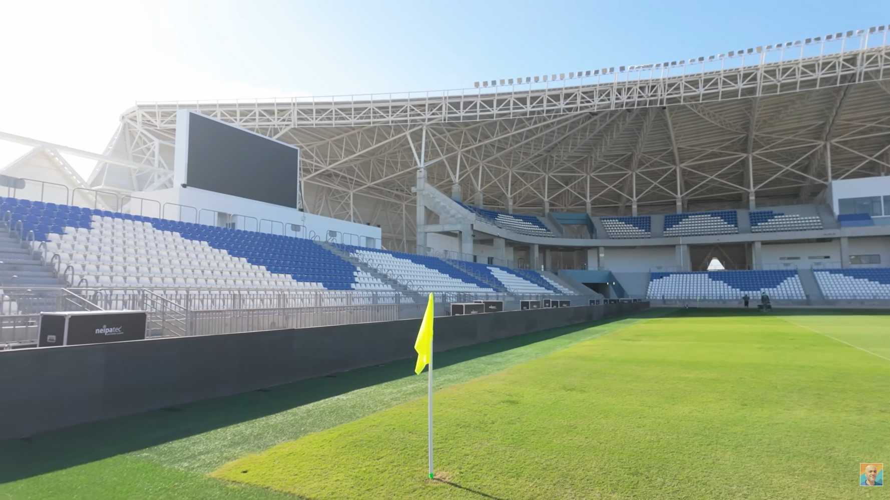 The main stand includes VIP boxes and facilities for players, referees, journalists, and staff. Since the stadium was originally planned to be much larger, its overall footprint is quite extensive, leaving room for possible future expansion.