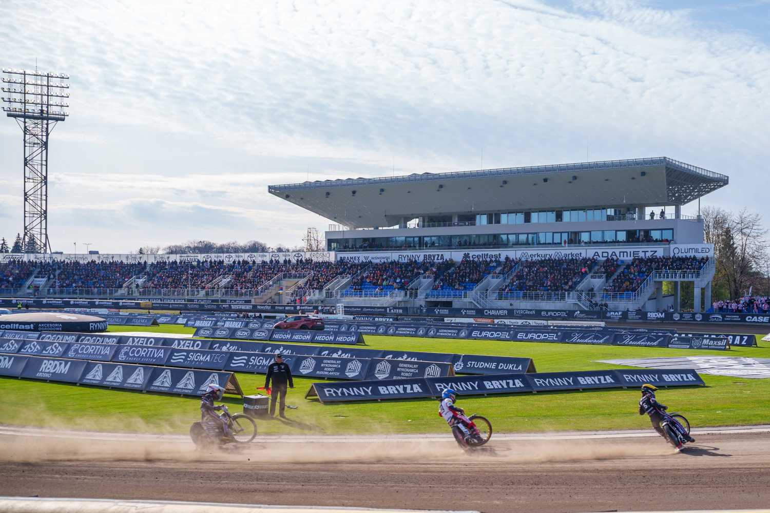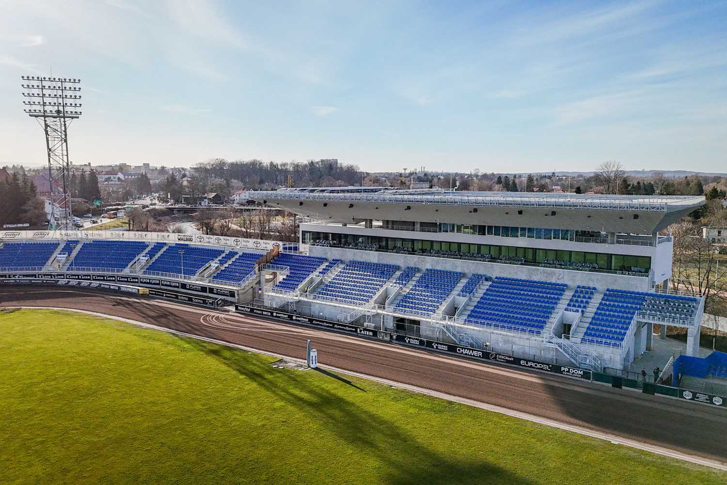 Today, the stadium continues to serve both football and speedway. The natural grass pitch is surrounded by the longest speedway track in Poland (396 m).