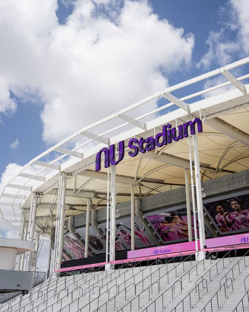 The modern, soccer-specific venue features a single-tier seating bowl with a capacity of 26,700 spectators. The structure is topped by an elegant white membrane roof extending beyond the stands to cover the surrounding promenade. Naming rights were acquired by Brazilian digital bank Nubank – hence the name Nu Stadium.
