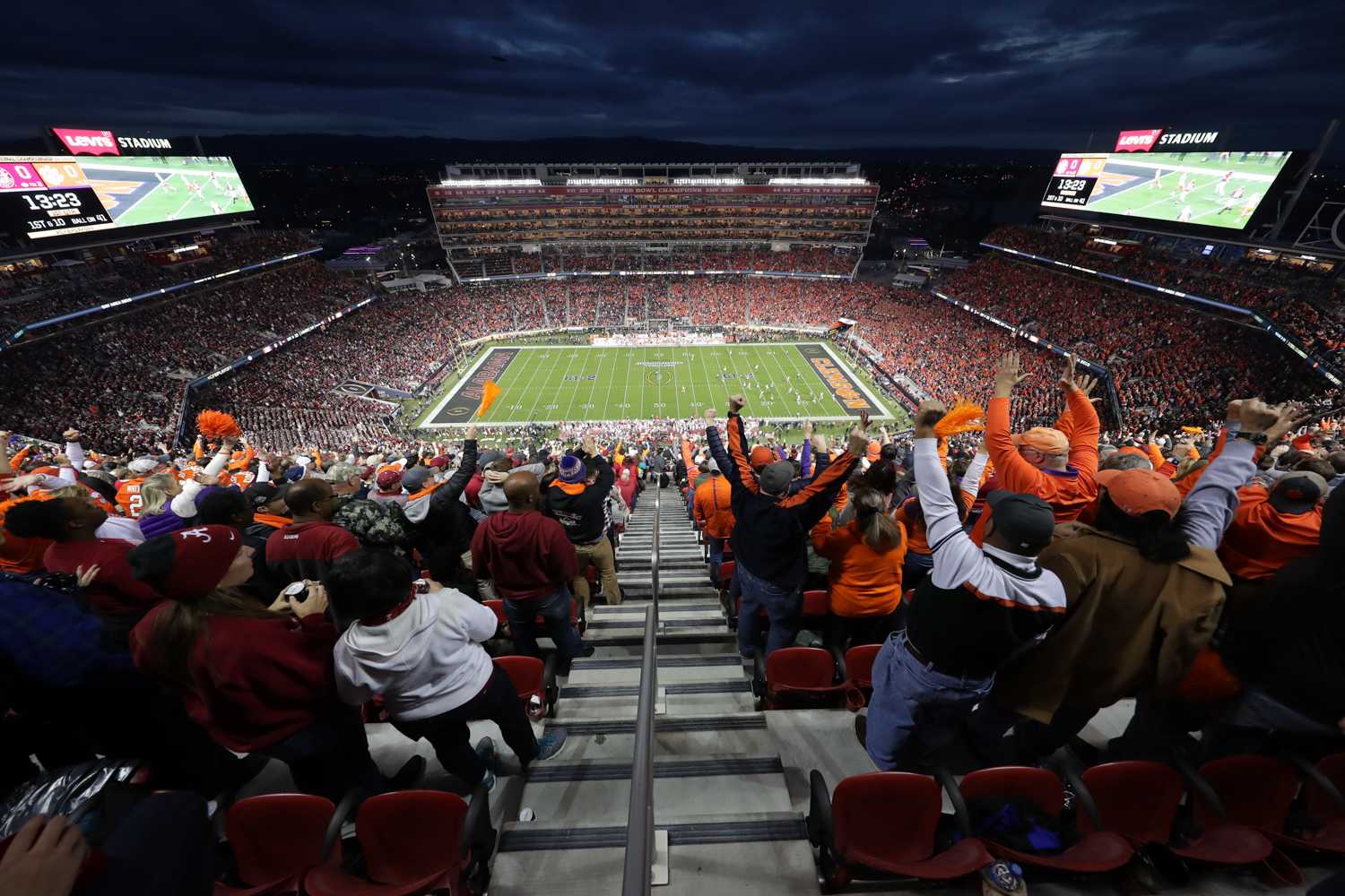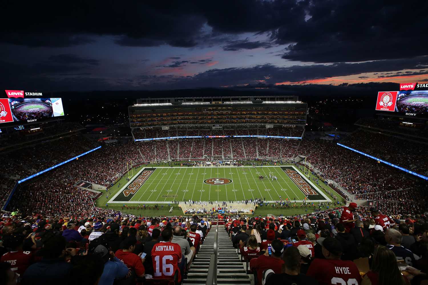 Levi's Stadium can hold 68,500 spectators, putting it in the middle of the list of arenas in the NFL. Its design is distinguished by the stands in the stadium, which are divided into three main levels. However, the distribution is not even - the auditorium is lower in the north and south to make room for the huge screens.